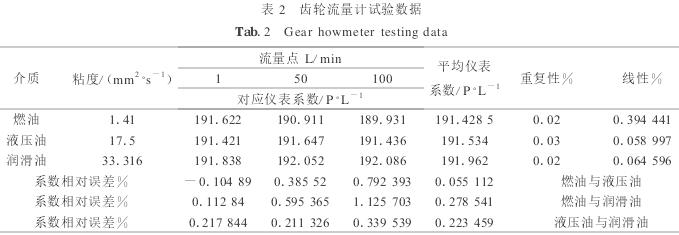 3)粘度對(duì)齒輪流量計(jì)的影響相對(duì)較小. VC5齒輪流量計(jì)用于燃油介質(zhì)量程比為100: 1時(shí)線性為0.4%,運(yùn)用于潤(rùn)滑油介質(zhì)時(shí)線性為0.1%,在同樣流量下系數(shù)變化*大為0.6%.