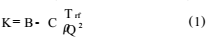 當(dāng)流量大于始動流量值后,隨著流量的增加,渦輪旋轉(zhuǎn)角速度也將增大。在測量范圍內(nèi),流體產(chǎn)生的阻力矩T將成為影響流量計特性的主要困素。相對來說,由軸承及其它機械傳動部件摩擦產(chǎn)生的機械阻力矩就比較小了。以下討論中,假定機械阻力矩為0,則儀表系數(shù):