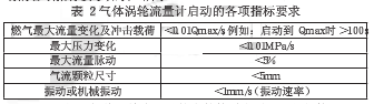 在啟動(dòng)氣體渦輪流量計(jì)時(shí),應(yīng)保持相對(duì)較慢的加壓速度,如果過(guò)快的加壓將有可能損壞氣體渦輪的葉片,氣體渦輪流量計(jì)啟動(dòng)的各項(xiàng)指標(biāo)要求如表2所示。