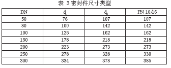 (十三)應(yīng)用時(shí)必須保證流量計(jì)的氣體出口與入口連接準(zhǔn)確,并且每一個(gè)螺栓都應(yīng)受力勻稱,為了確保測(cè)量準(zhǔn)確度,需保障管線中不含任何形式的密封件,密封件的使用需根據(jù)設(shè)計(jì)要求,尺寸類型如表3所示。