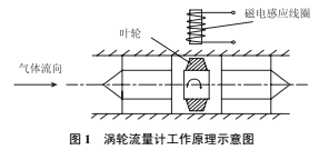 1、渦輪流量計的測量原理渦輪流量計是一種速度式流量儀表,測量本體是渦輪流量傳感器,主要由葉輪和磁電感應線圈組成,葉輪軸心與管道中心相同,可以自由轉(zhuǎn)動,其葉片與氣體流動方向成一定角度。在流體沖擊下,渦輪沿管道軸向旋轉(zhuǎn),其旋轉(zhuǎn)速率隨流量變化而不同,流速越高,動能越大,渦輪的轉(zhuǎn)速也越高。渦輪的轉(zhuǎn)速經(jīng)磁電感應轉(zhuǎn)換器轉(zhuǎn)換為相應頻率的電脈沖,通過顯示儀表進行積算和顯示(圖1)。