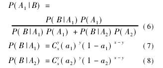 用C事件代替式(6)~(8)中的B事件,計(jì)算可得C發(fā)生的情況下A1的可信度為7.08%,即后驗(yàn)概率為P(A1|C)=7.08%,P(A2|C)=92.92%。