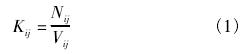 式中:Kij為*i檢定點(diǎn)*j次檢定的儀表系數(shù),L-1或(m3)-1,其中,i=1,2,3,…,m,m為檢定點(diǎn)數(shù),m≥3,j=1,2,3,…,n,n為檢定次數(shù),n≥3;Nij為*i檢定點(diǎn)*j次檢定時流量計(jì)顯示儀表測得的脈沖數(shù);Vij為*i檢定點(diǎn)*j次檢定時標(biāo)準(zhǔn)裝置測得的實(shí)際流量,L或m3。