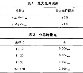 2現(xiàn)行法蘭連接渦輪流量計(jì)標(biāo)準(zhǔn)中關(guān)于分界流量的規(guī)定