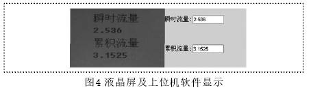 該程序主要用于實時更新流量信息,微處理器與上位機通過RS232接口以modbus協議進行通信。*后,該設計液晶屏上所顯示的流量信息與上位機軟件所顯示的數據如圖4所示。