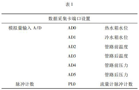 數(shù)據(jù)采集系統(tǒng)由工控機(jī)、消防水流量計以及數(shù)據(jù)采集卡組成。 4000 次冷熱沖擊試驗要求在在*大流量 qs 條件下運行,對流量數(shù)據(jù)的采集用到消防水流量計及數(shù)據(jù)采集卡。消防水流量計采集管路流量,數(shù)據(jù)采集卡將消防水流量計采集到的數(shù)據(jù)反饋給工控機(jī)系統(tǒng)。過程中,試驗管路水溫以及水箱水位的采集控制也是通過數(shù)據(jù)采集卡反饋給系統(tǒng)控制。試驗過程用到的數(shù)據(jù)采集卡采用研華生產(chǎn)的PCI - 1711。PCI - 1711 是一款多功能 PCI 總線數(shù)據(jù)采集卡,具有 16 路單端模擬量輸入功能、2 路 12位模擬量輸出功能、16 路數(shù)字輸入和 16 路數(shù)字輸出功能、計數(shù)器功能等。為保證冷熱沖擊試驗結(jié)果的準(zhǔn)確性,嚴(yán)要求嚴(yán)格控制管路流量以及管路壓力。因此,管路設(shè)置前后管路溫度、冷熱水箱水位以及管路壓力的采集,管路流量根據(jù)消防水流量計脈沖計數(shù)進(jìn)行采集,其數(shù)據(jù)采集卡端口設(shè)置如表 1 所示。