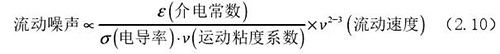 流動噪聲主要出現(xiàn)在低電導(dǎo)率流體的檢測中,由輸出端輸出的直流*化電壓時常出現(xiàn)左右擺動的現(xiàn)象,而此種擺動的電壓被稱為流動噪聲。上式(2.5)中可以觀察了解到流體電導(dǎo)率和流動噪聲呈現(xiàn)出負(fù)相關(guān)關(guān)系,由此可以了解到在進(jìn)行低電導(dǎo)率的計算中需要重點考慮位移電流。