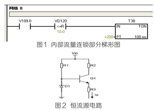 (2)PLC及模塊。PLC及模塊是自動化控制系統(tǒng)主要設(shè)備,且PLC及模塊屬于高集成高精密電子設(shè)備,保持室內(nèi)整潔舒適,可以提高自動化系統(tǒng)運行穩(wěn)定性。PLC及模塊硬件運行可靠,內(nèi)部控制程序是其控制核心軟件,如PLC硬件出現(xiàn)故障或損壞一般直接更換,但原內(nèi)部控制軟件無法上傳,整個控制系統(tǒng)成失控狀態(tài)。所以其內(nèi)部控制程序在調(diào)試驗收合格后應(yīng)及時備份并做好標(biāo)記,為以后修復(fù)PLC故障提供保障。PLC系統(tǒng)的維護(hù)技術(shù)人員需掌握一定基礎(chǔ)PLC控制邏輯原理,對準(zhǔn)確判斷PLC故障點有很大的幫助。例如選礦廠水泵房S7-200系列PLC自動抽水系統(tǒng)出現(xiàn)如下故障 :觸摸屏能控制變頻器啟動水泵抽水,但在短時間內(nèi)會自動停泵,導(dǎo)致無法正常抽水。通過故障現(xiàn)象可初步判斷PLC及模塊硬件設(shè)備正常,主要由于某個變量有問題導(dǎo)致連鎖停機(jī)。打開備份PLC控制梯形圖程序進(jìn)行相關(guān)分析,原來是氨水計量表瞬時流量數(shù)值做了連鎖,其在一定時間內(nèi)瞬時流量不大于10m 3 /h時,自動停泵,電磁流量模擬量輸出電流值僅為4ma且無變化,確定氨水計量表有故障。可臨時應(yīng)急維修,模擬量模塊輸入模擬電流值10ma~20ma之間一固定數(shù)值即可恢復(fù)正常運行。制作簡單恒流源電路代替氨水計量表輸出的模擬電流量,實現(xiàn)解決水泵無法正常運行的故障。