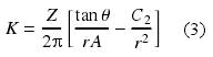 紊流狀態(tài)下甲醇流量計(jì)儀表系數(shù)數(shù)學(xué)模型[9]可通過式(3)表示。