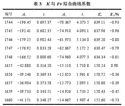 3)Re與f/v成正比,通過雙指數(shù)衰減函數(shù)對(duì)K和f/v之間關(guān)系進(jìn)行擬合,進(jìn)而計(jì)算流量,該方法流量計(jì)算結(jié)果與標(biāo)準(zhǔn)流量*大誤差小于±1%;