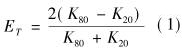 式中:K80為某流量點80℃下儀表系數(shù),L-1;K20為某流量點20℃下儀表系數(shù),L-1。