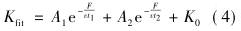 可由平均流速和運動粘度計算得到,所以儀表系數(shù)K是流量計輸出頻率與運動粘度之商(F/v)的函數(shù)。研究*終確定采用雙指數(shù)衰減函數(shù)進行擬合,雙指數(shù)衰減函數(shù)Kfit表示為
