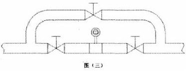 5.被測介質(zhì)是嚴重污濁液體過容易在管道結(jié)垢的液體,可以在安裝傳感器的測量管道上加一個旁通管,以便于拆卸清洗。如圖三所示。