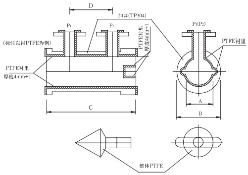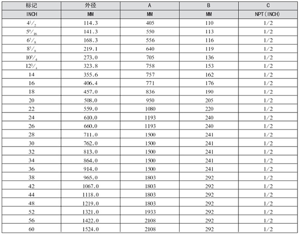 2.尺寸表中同一欄值有兩個并以/隔開,表示/下方的數(shù)值是以HG管法蘭尺寸計(jì)算所得。