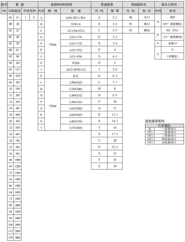 總長度允許誤差范圍:φ114.3-273,±4mm;DN323.8-610,±6mm;DN660-1524,±7mm。長輸管道公稱直徑從“4 1/2~60”,只有一個外徑系列,故選項(xiàng)時不選外徑代碼。