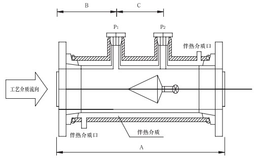 專門為測量要求夾套管伴熱工藝介質(zhì)的流量而設(shè)計(jì),特別適合易結(jié)晶介質(zhì)及溫控要求嚴(yán)格的場合。鋼制夾套管法蘭標(biāo)準(zhǔn):SHT501-1997。