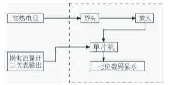 圖1 DTB液氨流量計(jì)溫度補(bǔ)償器安裝電原理方框圖
