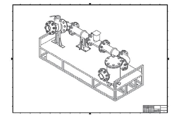 2.1 標準表法流量標準裝置的結(jié)構(gòu)設(shè)計根據(jù)加油機的計量檢定規(guī)程,加油機流量計需要定期去檢定部門檢定儀表的準確度,檢定過程中儀表的運輸需要耗費很長的時間、精力以及財力。本裝置設(shè)計的初衷是為計量檢定部門制造出便于攜帶、可移動的標準裝置,為計量檢定人員對機場加油機流量檢定時節(jié)省一定的時間和精力。標準表裝置的出現(xiàn)可以大大節(jié)約檢定所需要的時間成本。根據(jù)檢定現(xiàn)場的需求,標準裝置的長度不能大于1.5 m。標準裝置中標準表選用的是高準確度的智能型渦輪流量計。