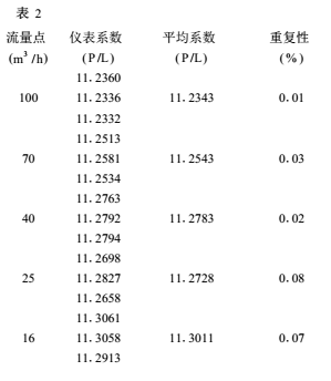 對(duì)與前面例子相同的渦輪流量傳感器進(jìn)行的另一次檢定,采取了上述的隔離措施,檢定數(shù)據(jù)見(jiàn)表2。