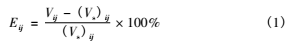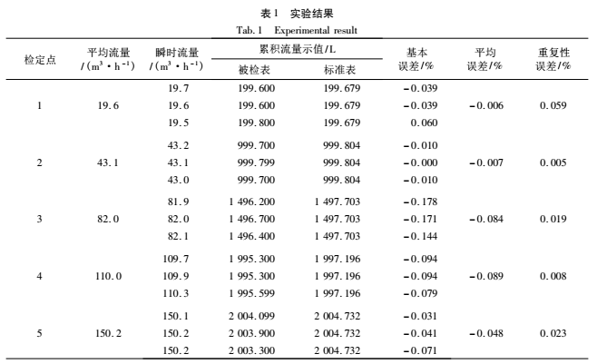 (1)式中:Eij為*i個(gè)檢定點(diǎn)*j次檢定被檢流量計(jì)的示值誤差百分?jǐn)?shù);Vij 為*i個(gè)檢定點(diǎn)*j次檢定時(shí)流量計(jì)顯示的累計(jì)流量值,單位為m3或L;(Vs)ij為*i個(gè)檢定點(diǎn)*j次檢定時(shí)標(biāo)準(zhǔn)裝置測(cè)得的累計(jì)流量值,單位為m3或L。