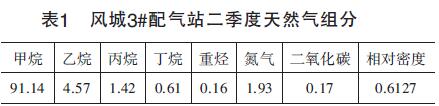 2015年7月,新疆油田公司風(fēng)城3#配氣站的渦輪流量計(jì)在現(xiàn)場驗(yàn)收時(shí)就進(jìn)行了此項(xiàng)內(nèi)容的驗(yàn)證,對該站在用的3套分體式溫壓補(bǔ)償型氣體渦輪流量計(jì)(雙顯示式)分別選取了3組數(shù)據(jù)(工況壓力、工況溫度、工況壓縮系數(shù)、標(biāo)況壓縮系數(shù)、工況流量、標(biāo)況流量),將流量計(jì)測量的標(biāo)況流量與由氣態(tài)方程計(jì)算出的理論標(biāo)況流量進(jìn)行對比,得出兩者誤差,根據(jù)誤差判斷在傳輸過程的失真程度。按**標(biāo)準(zhǔn)要求對風(fēng)城3#配氣站取樣得到的天然氣組分報(bào)告,詳細(xì)數(shù)據(jù)如表1所示。根據(jù)表1中的天然氣組分,以及介質(zhì)的工作壓力、工作溫度可計(jì)算出工況壓縮系數(shù)Zg,根據(jù)**標(biāo)準(zhǔn)中天然氣標(biāo)準(zhǔn)參比條件,可計(jì)算出標(biāo)況壓縮系數(shù)Zn。
